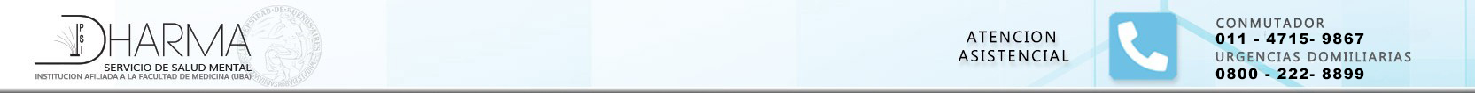 RESIDENCIA RESIDENCIA DE PSIQUIATRÍA Acreditada por la UBA / RESIDENCIA DE PSIQUIATRIA Acreditada por el MSyDS CARRERA CARRERA UNIVERSITARIA DE PSIQUIATRIA (UBA) CURSOS CURSO DE ENFERMERIA PSIQUIATRICA[ACTUALIZADO]CURSO DE PSIQUIATRIA INFANTOJUVENIL CAMPUS *ARCHIVOS *ALUMNOS Anterior Siguiente